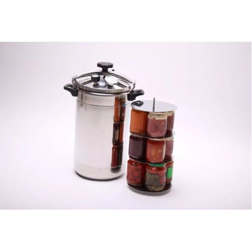 Устройство оснащено системой безопасности, которая производит блокирование крышки во время консервации. Аппарат имеет кран для слива горячей воды и клапан сброса давления, который работает в автоматическом режиме, поддерживая нужное давление не перегревая продукты.